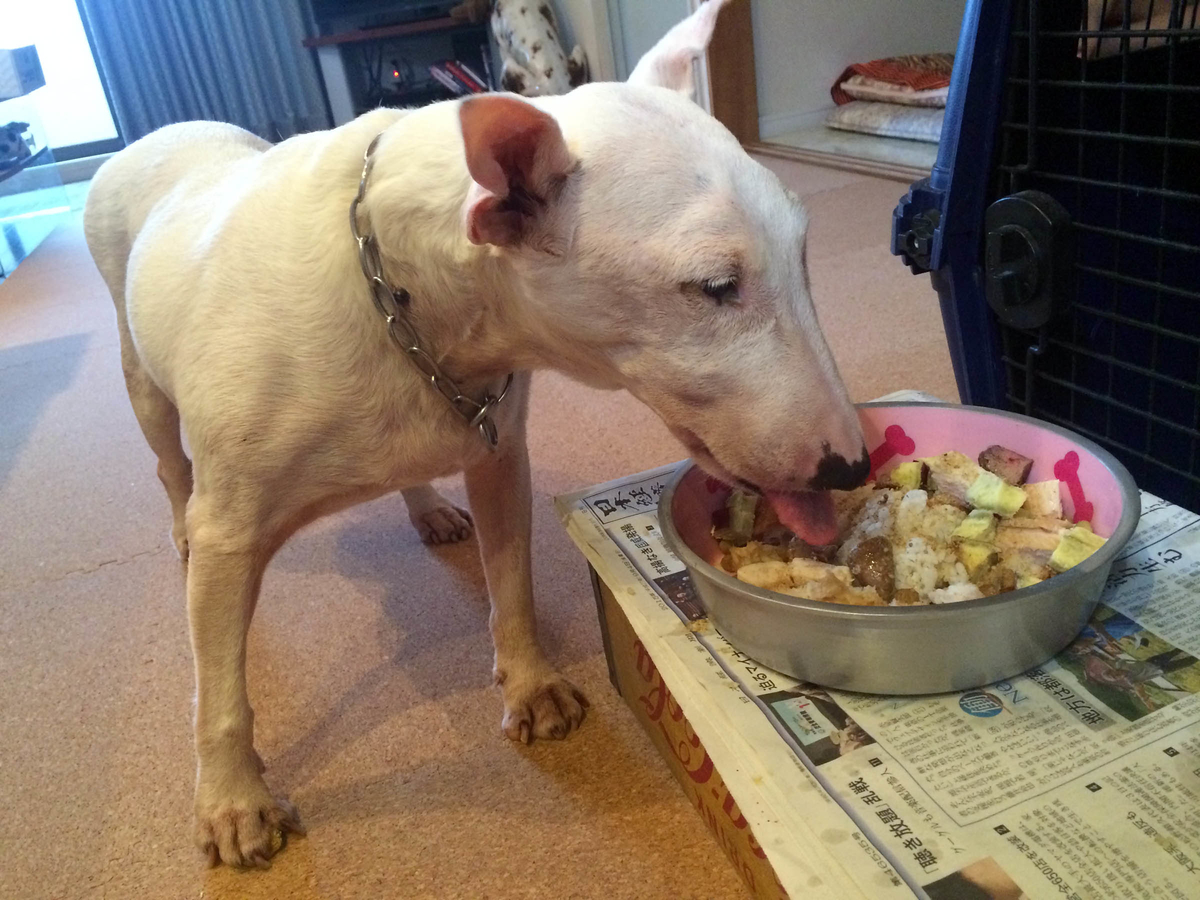 若くて元気なときには、何でも良く食べてくれたし、少々変なのもを食べさせても体を壊すこともありませんでした。ずっとドッグフードに頼りっきりで、時々肉とか野菜をトッピングしてあげて。それで何の問題も無いと思ってました。