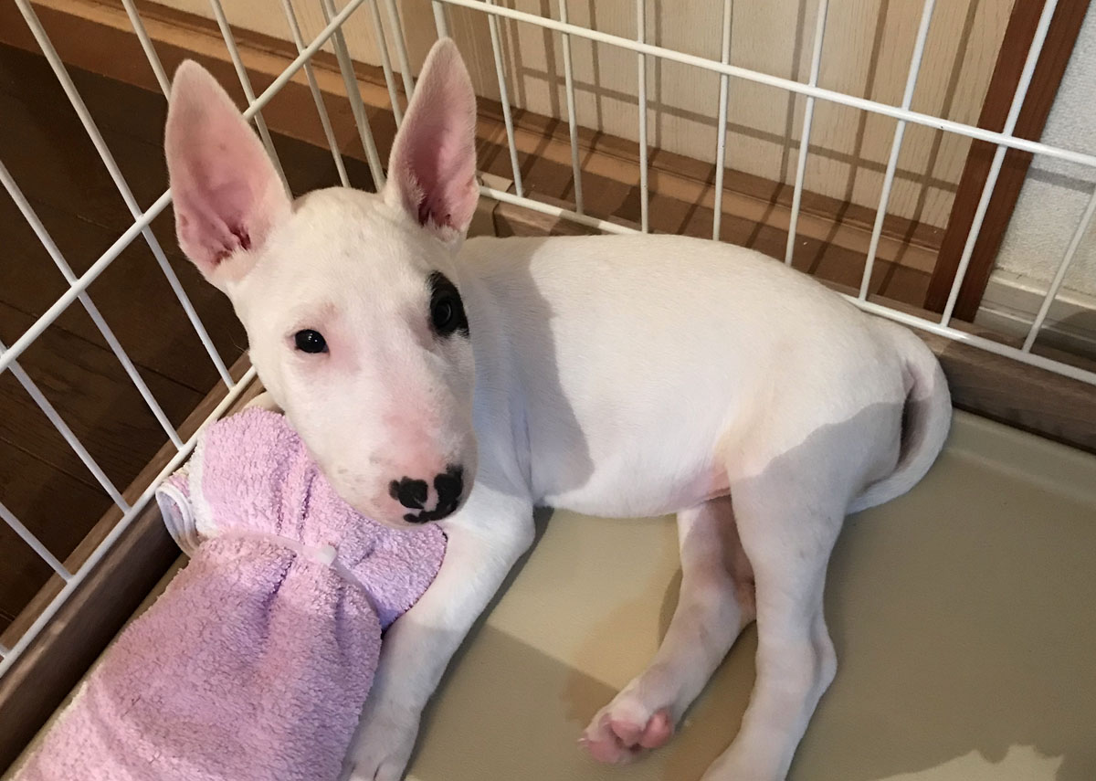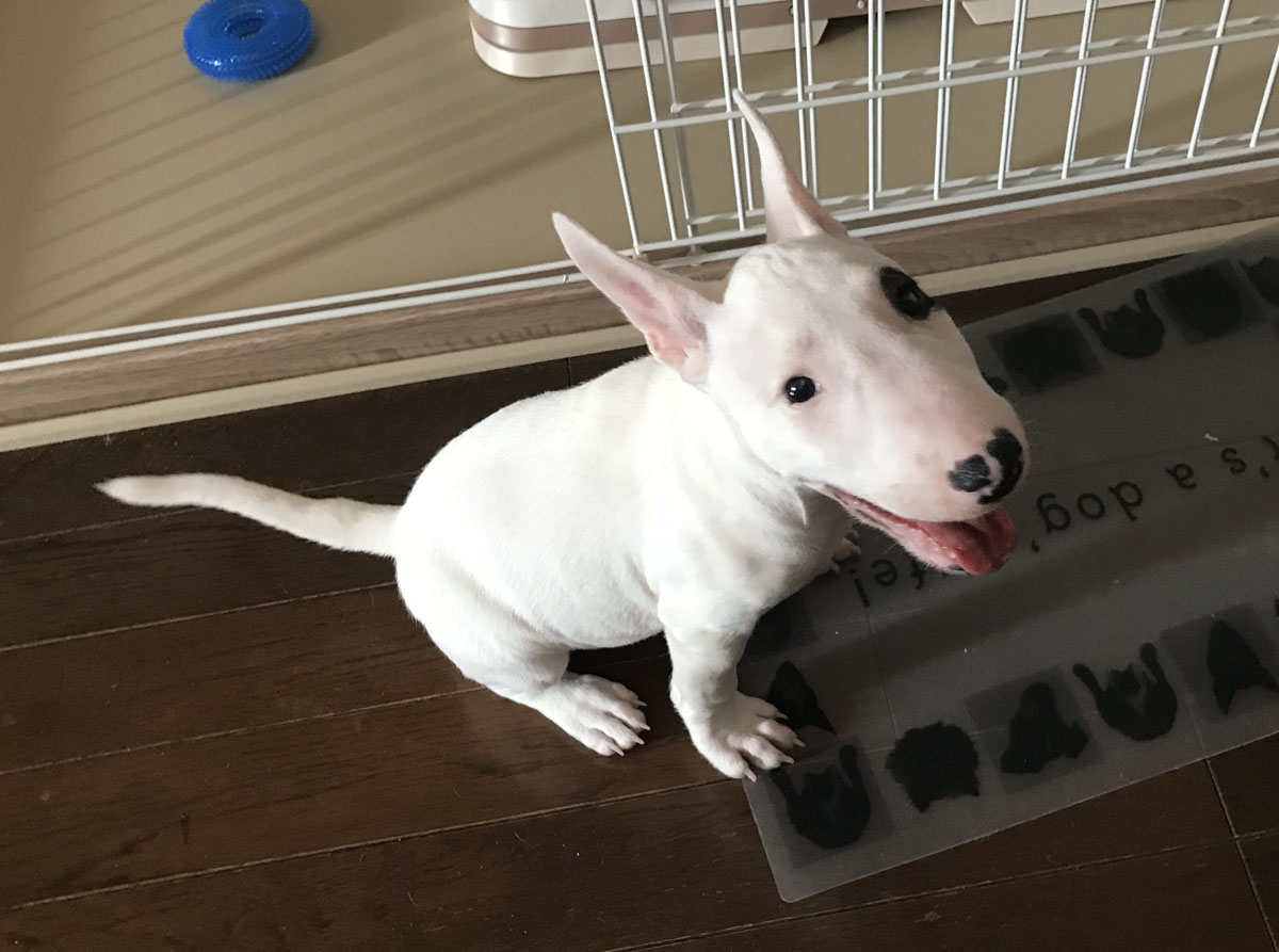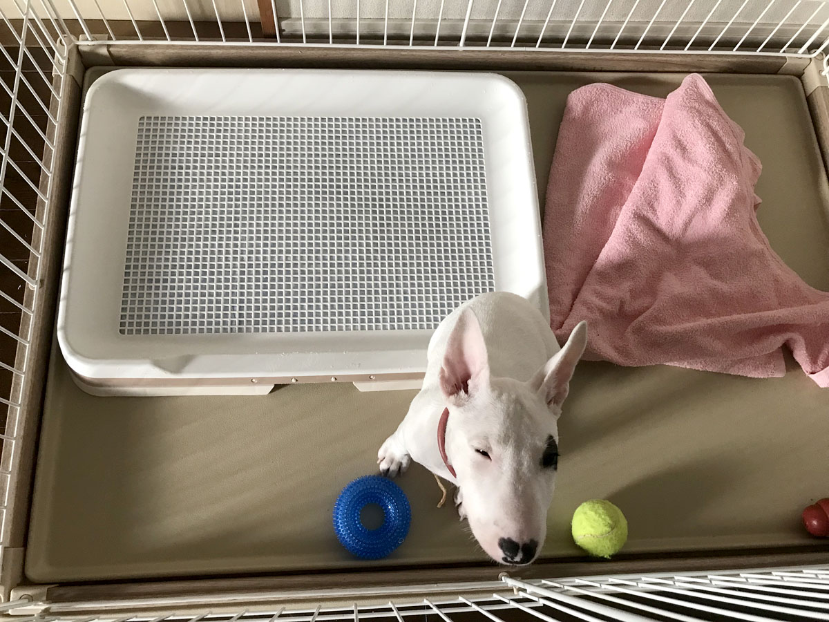 ブルテリアは運動量の多い犬なので、早くサークルから出して、フリーにしてあげたいのですが。
