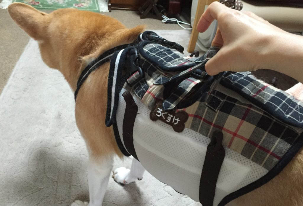 ろくすけが愛用している後ろ足ハーネスは、常時着用するために作られていない。