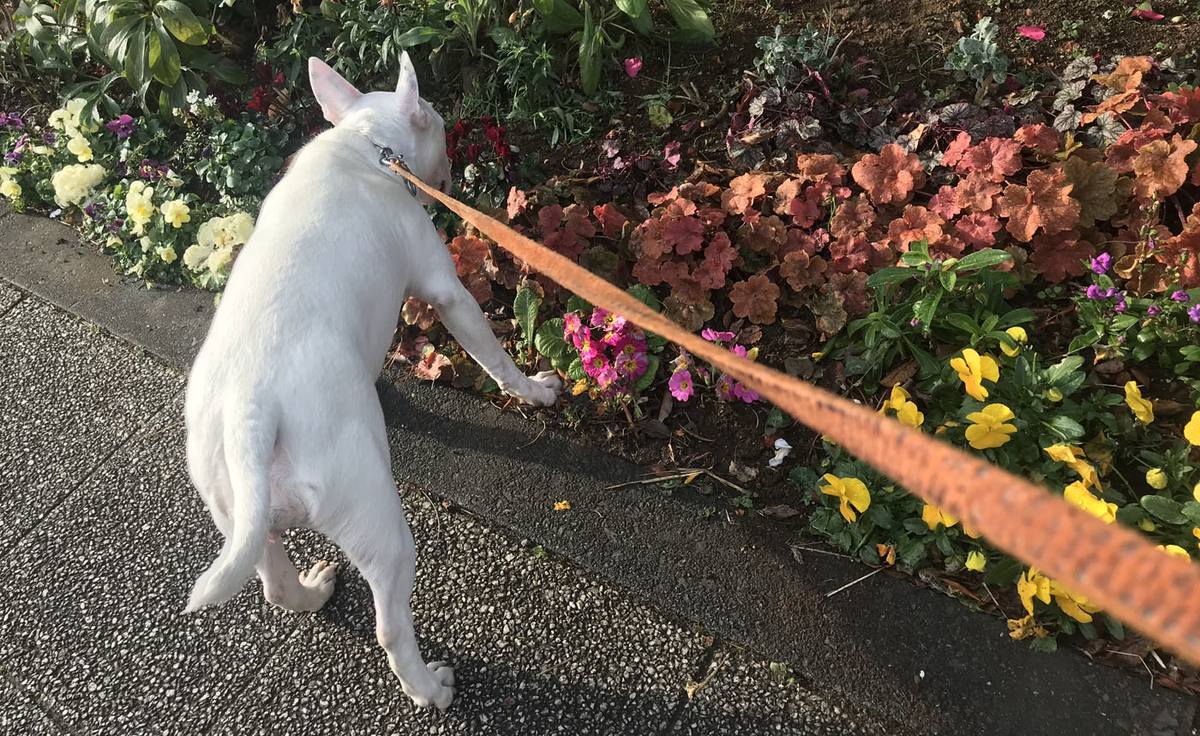 散歩に出た直後、まず1本目の木の下でシッコ。2本目の木の下で💩。3本目でまたシッコ。ここ数日、同じ場所です。