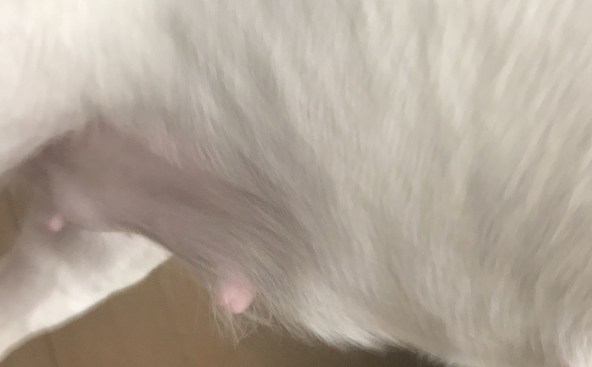 ピィ子のお腹を触っていたら、「アレッ、しこりがある?」