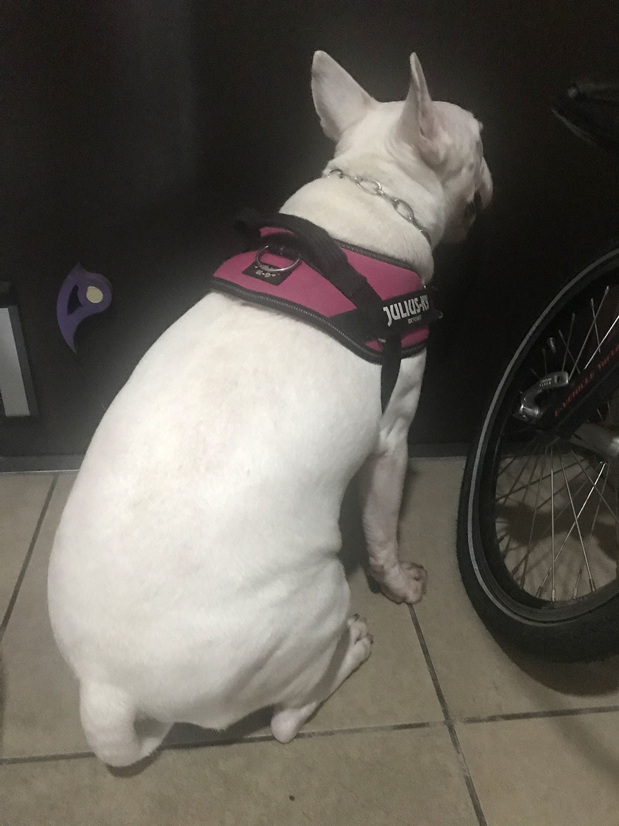 散歩のためにハーネスを付けると、自分で玄関まで駆けて行って、座って待つようになりました。