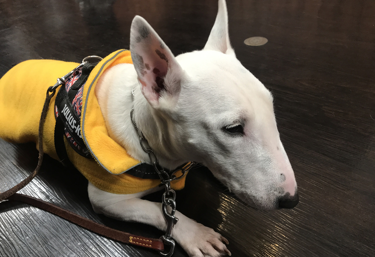 蝶ネクタイ姿で優しい先生でした。#犬を飼うということ#ピィ子#ブルテリア #関節炎#片足ケンケン pic.twitter.com/pGxj6oq7sd
